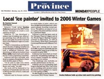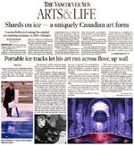 Gordon Halloran asked himself this question as he began his journey into the creation of this new art form in the early nineties. His work has been featured at The World Figure Skating Championships, the Calgary Olympic Plaza, Richmond’s Minoru Centre, Vancouver’s West End Community Centre and other rinks in Canada. He uses many techniques to create these paintings - hoses to airbrush paint, pebbling with ice and paint, carving patterns in the ice with skates, using the Zamboni as a palette knife and creating smaller paintings in freezers which he then trucks to the site and embeds into the ice like mosaic like patterns.